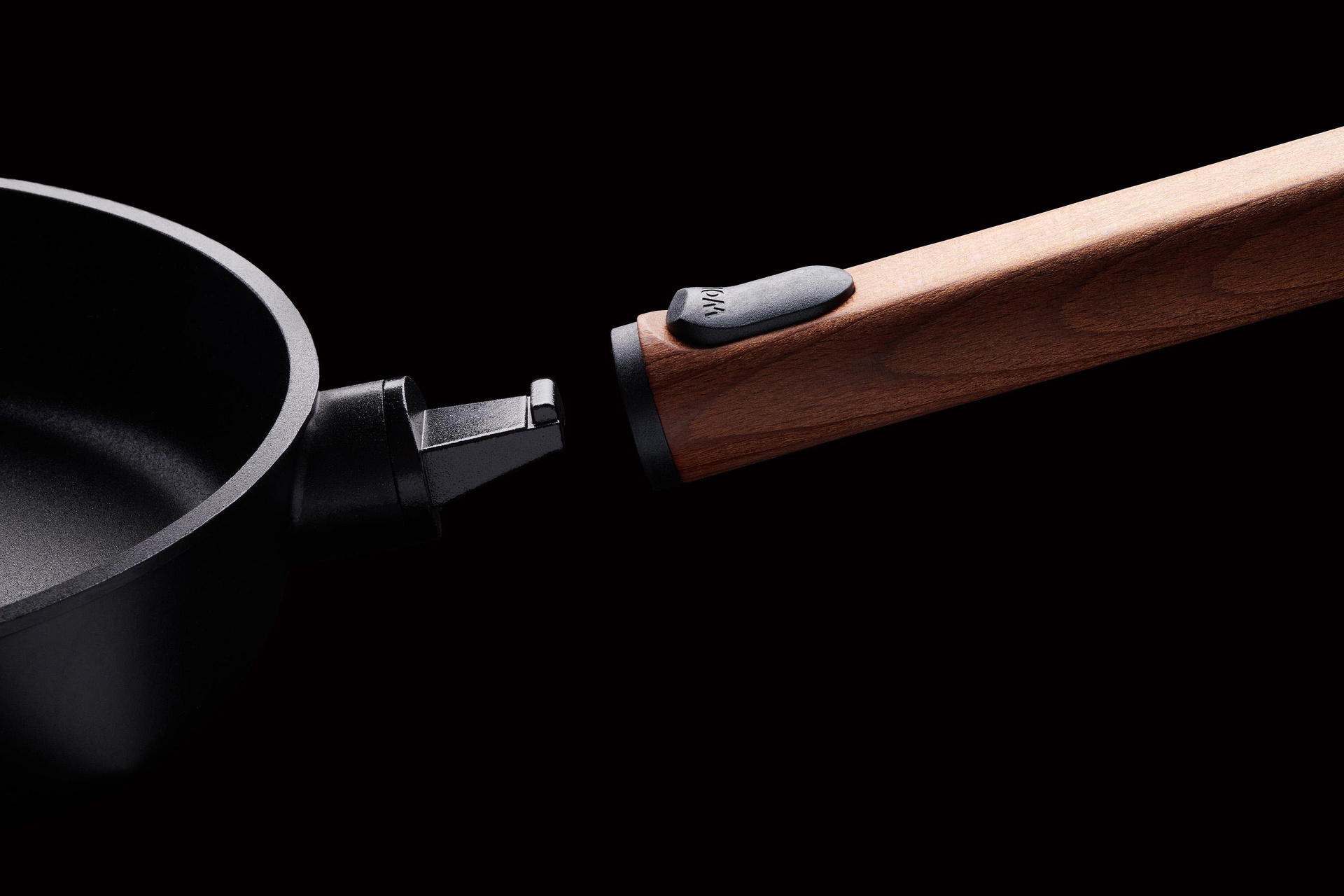 - Kompromisslose Sicherheit: Das patentierte System sorgt dafür, dass der Stiel sicher hält, aber auch mühelos abgenommen werden kann – auch für kleine Köch:innen ganz unkompliziert und sicher.