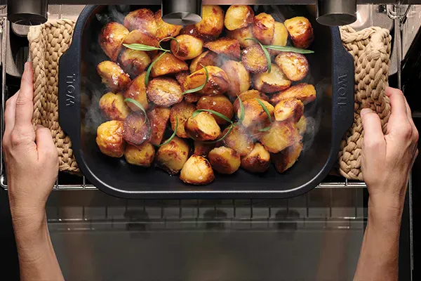 Kaum ein Werkzeug ist in der Küche so flexibel einsetzbar wie „Roast-it!“-Bratreinen: von deftig bis süß, vom Ofen auf den Tisch. Sie sind hitzebeständig bis 260 °C und ihre dicken Wände und Boden aus korrosionsbeständigem aluminisiertem Stahl, sorgen für ein gleichmäßiges Garergebnis und exzellente Röstaromen. Gleichzeitig speichern sie die Wärme und helfen das Essen am Tisch warm zu halten. Mit der PFAS-freien keramischen Antihaftversiegelung gehört Ankleben der Vergangenheit an und der Abwasch wird zum Kinderspiel – damit gleich die nächste Portion in den Ofen geschoben werden kann.